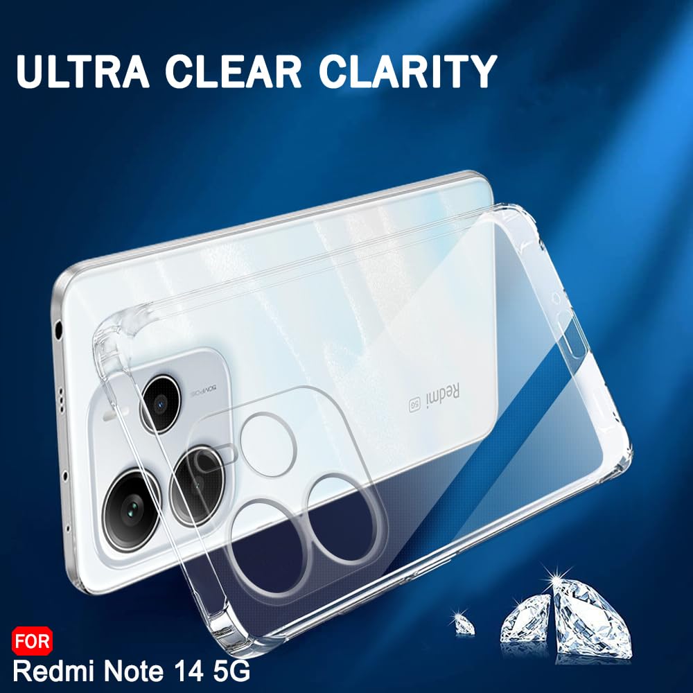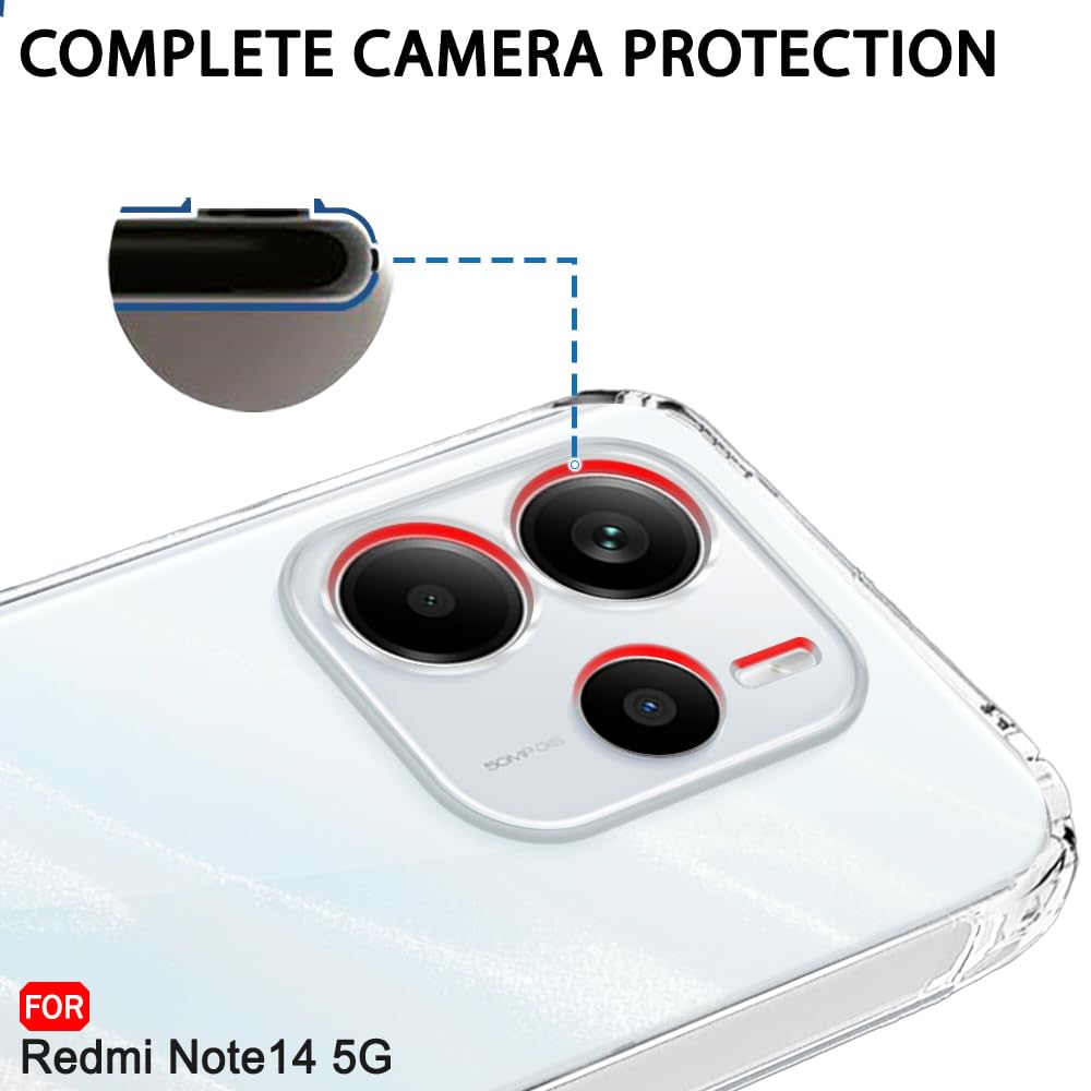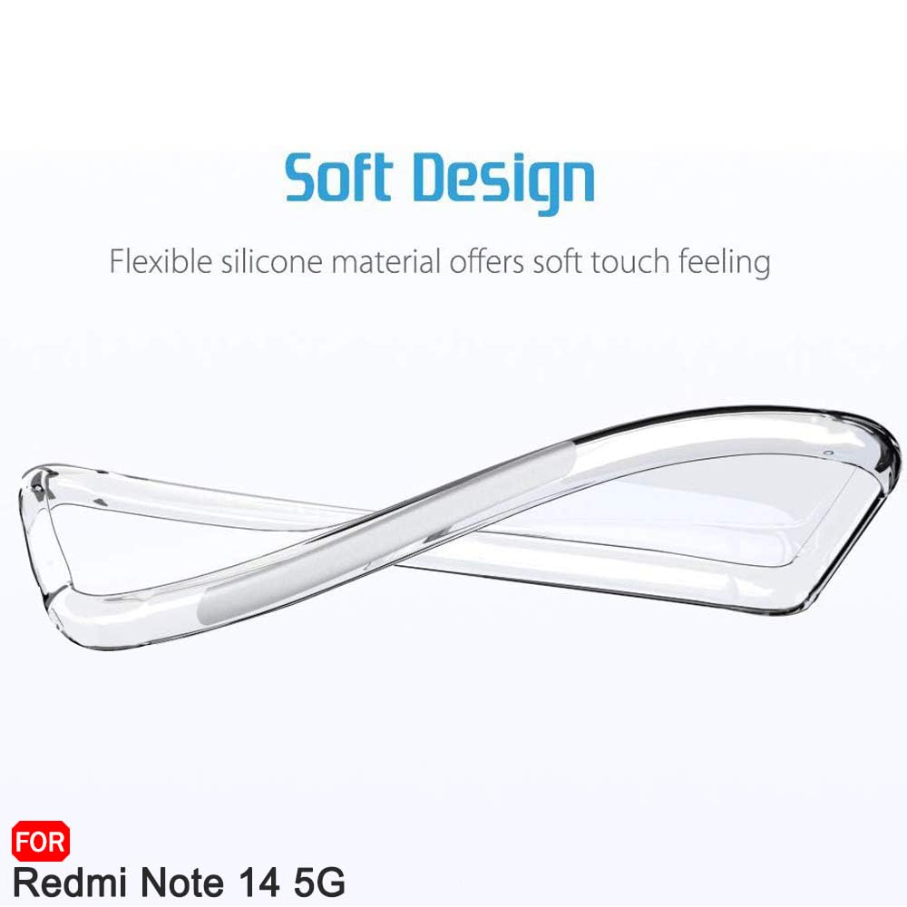TheGiftKart Back Cover Soft Case for Mi Redmi Note 14 5G | Best Camera Protection | Inbuilt Dust Plugs & Anti-Slip Grip | Ultra Clear Slim Back Cover Case for Redmi Note 14 5G (Silicone, Transparent)