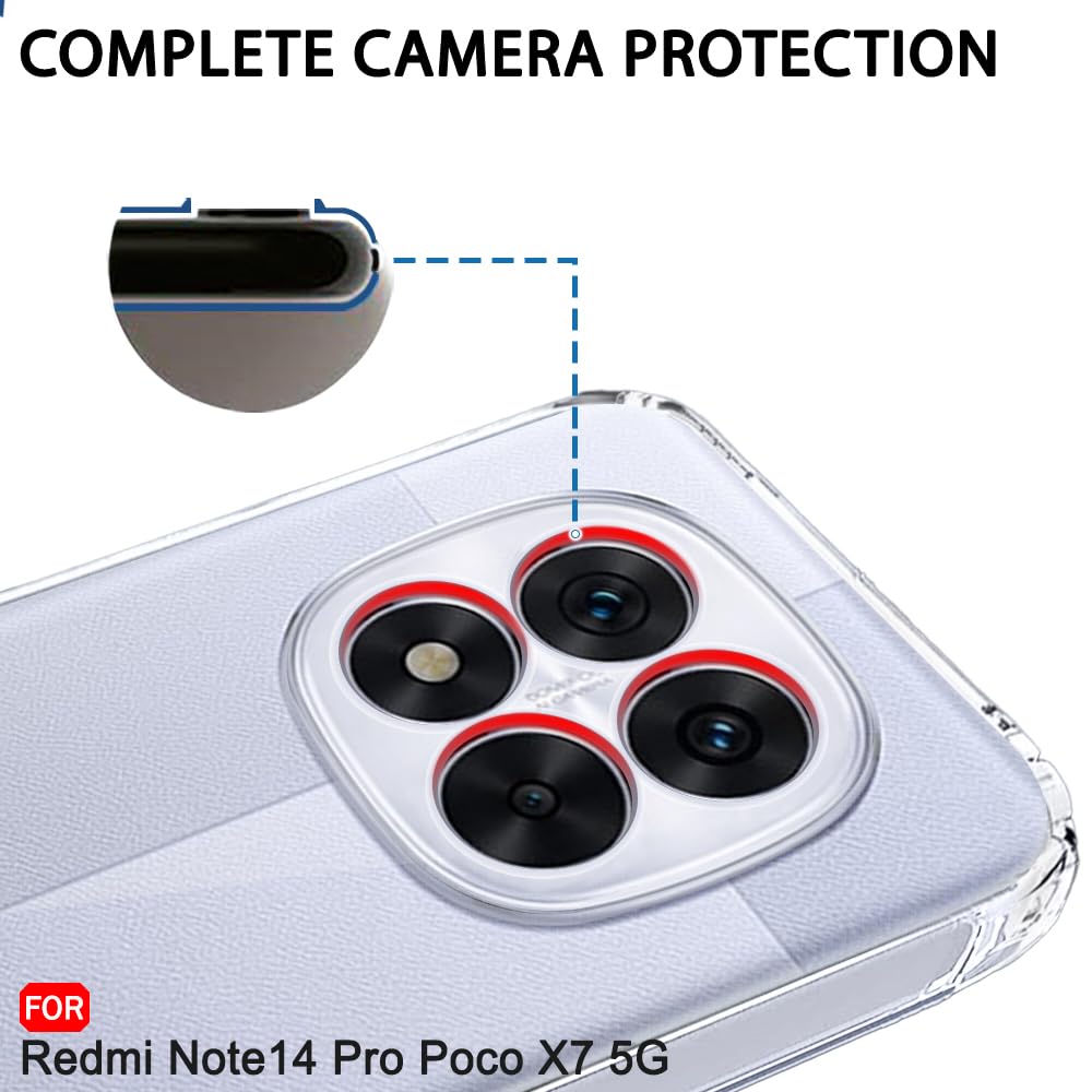 TheGiftKart Back Cover Soft Case for Mi Redmi Note 14 Pro/Poco X7 5G | Best Camera Protection | Inbuilt Dust Plugs & Anti-Slip Grip | Ultra Clear Slim Back Cover Case (Silicone, Transparent)