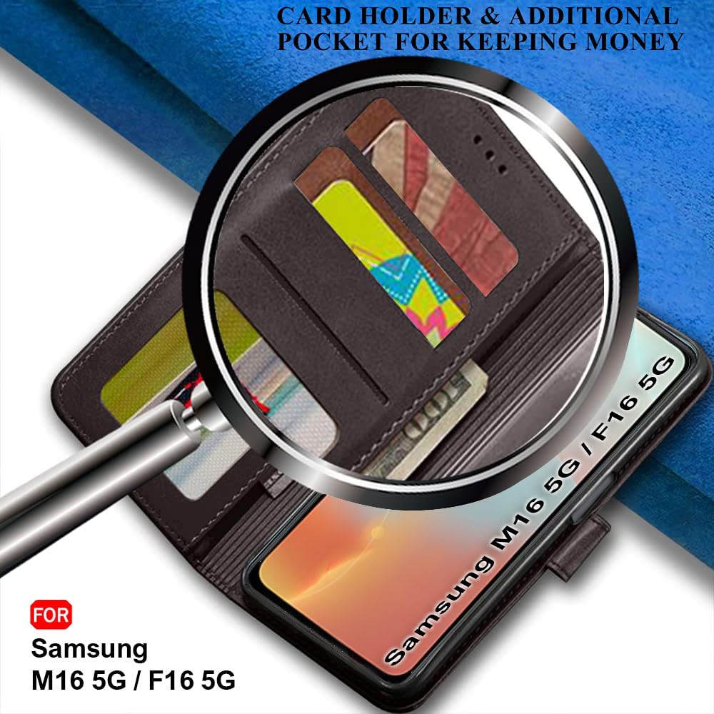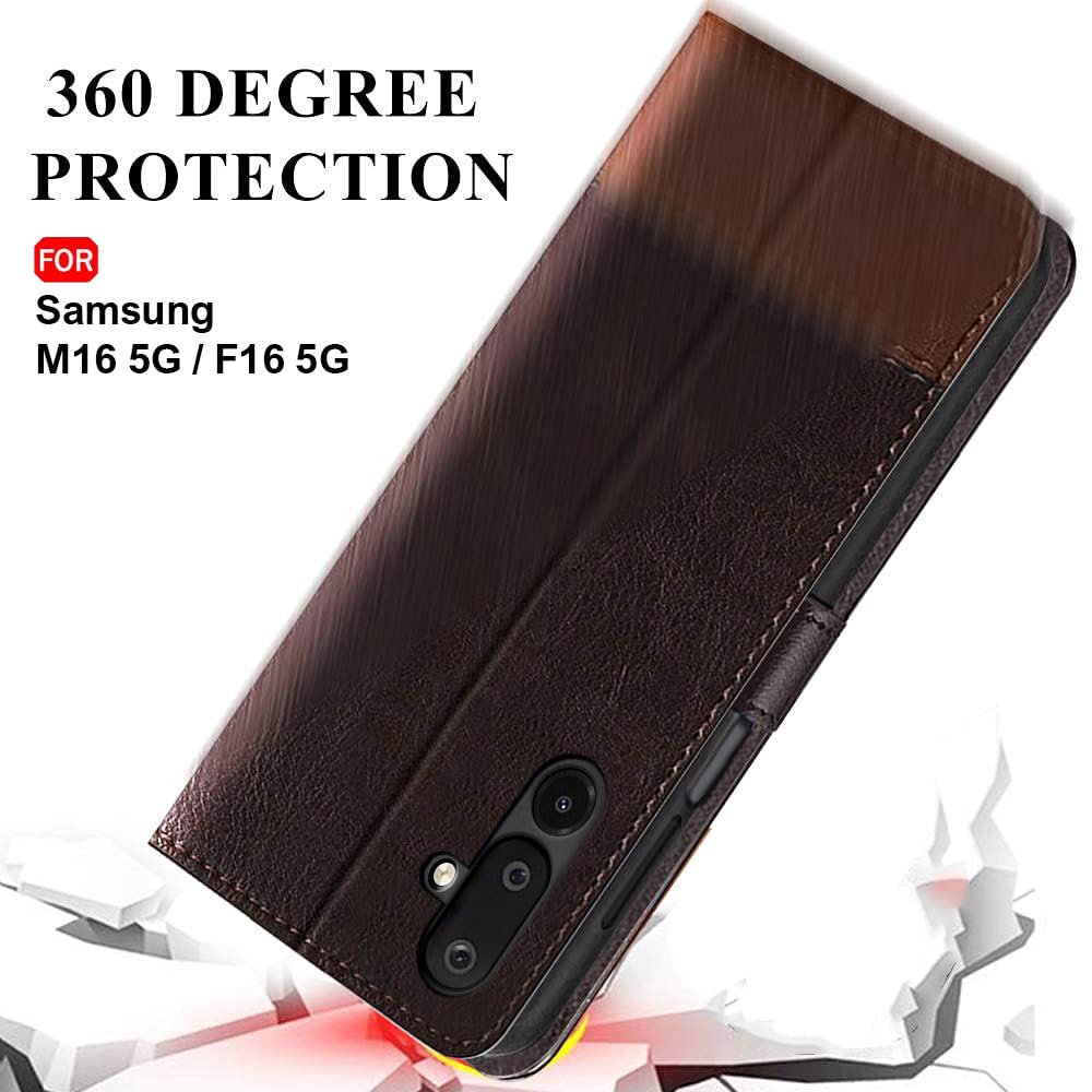 TheGiftKart Flip Back Cover Case for Samsung Galaxy M16 5G / F16 5G | Dual-Color Leather Finish | Inbuilt Stand & Pockets | Wallet Style Flip Back Cover for Samsung M16 (Faux Leather, Coffee & Brown)