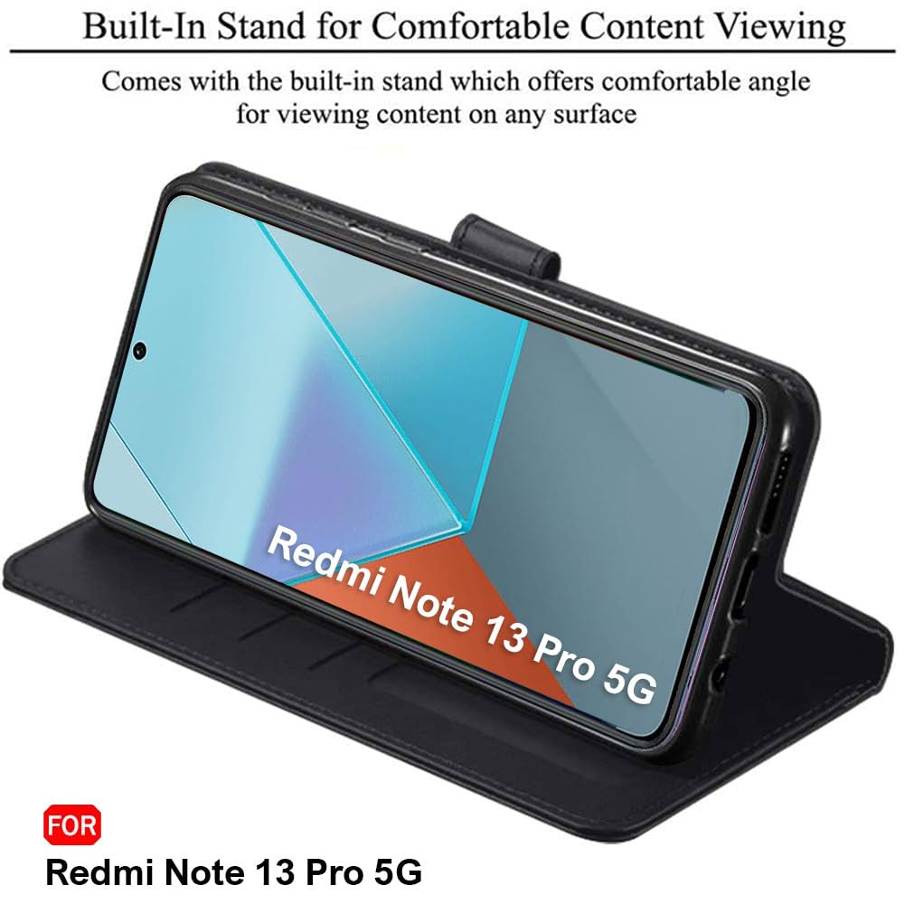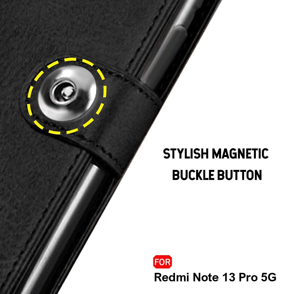 TheGiftKart Flip Cover Back Case for Mi Redmi Note 13 PRO 5G | Genuine Leather Finish | Designer Button | Inbuilt Pockets & Stand | Flip Back Cover Case for Redmi Note 13 Pro (Faux Leather, Black)