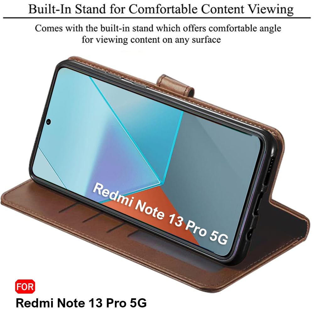 TheGiftKart Flip Cover Back Case for Mi Redmi Note 13 PRO 5G | Genuine Leather Finish | Designer Button | Inbuilt Pockets & Stand | Flip Back Cover Case for Redmi Note 13 Pro (Faux Leather, Brown)