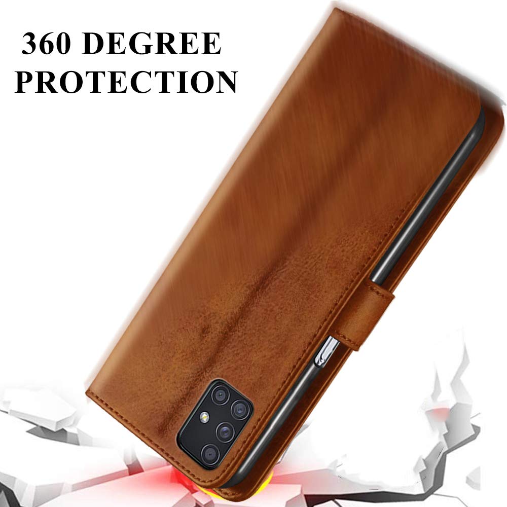 TheGiftKart Genuine Leather Finish for Samsung Galaxy M51 Flip Cover Back Case | Inside Pockets & Inbuilt Stand | Wallet Style | Designer Button Magnet Closure (Brown)