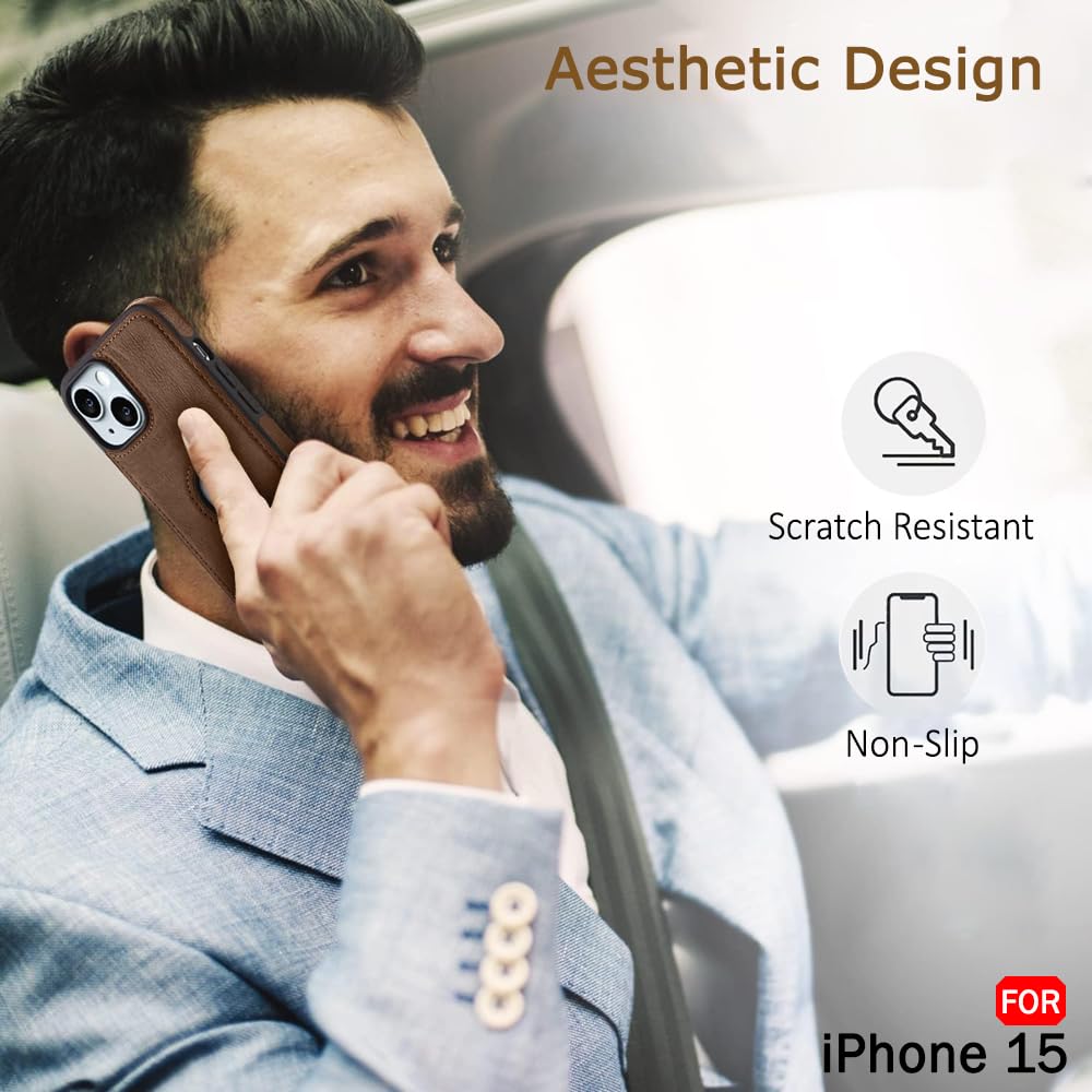 TheGiftKart Genuine Leather Finish iPhone 15 Back Cover Case | Shockproof Design | Raised Edges for Camera & Screen Protection | Stunning Minimalist Design Back Case Cover for iPhone 15 (Brown)