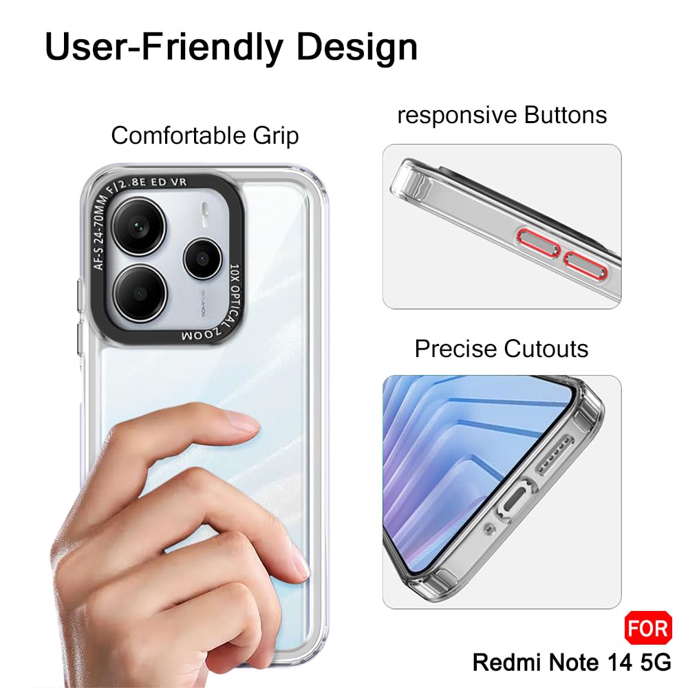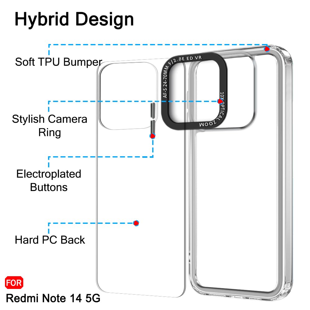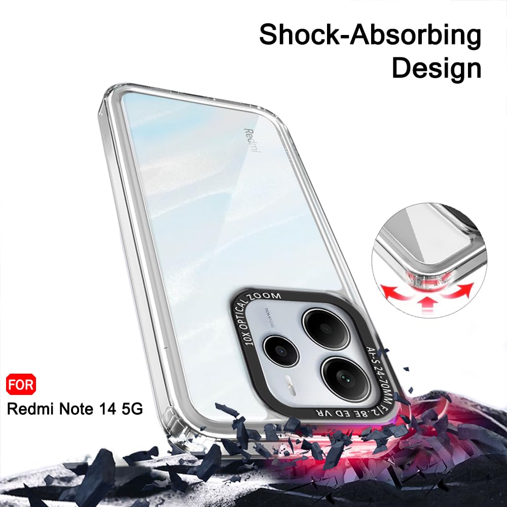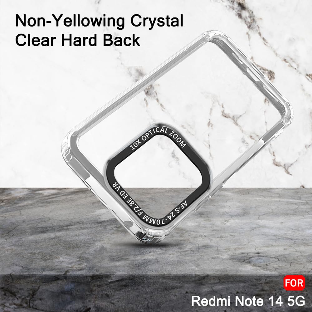 TheGiftKart Hybrid Shockproof Back Cover Case for Mi Redmi Note 14 5G | Stylish Camera Border | Plated Buttons | Crystal Clear Hard Back Cover Case for Redmi Note 14 5G (TPU & PC, Transparent Bumper)
