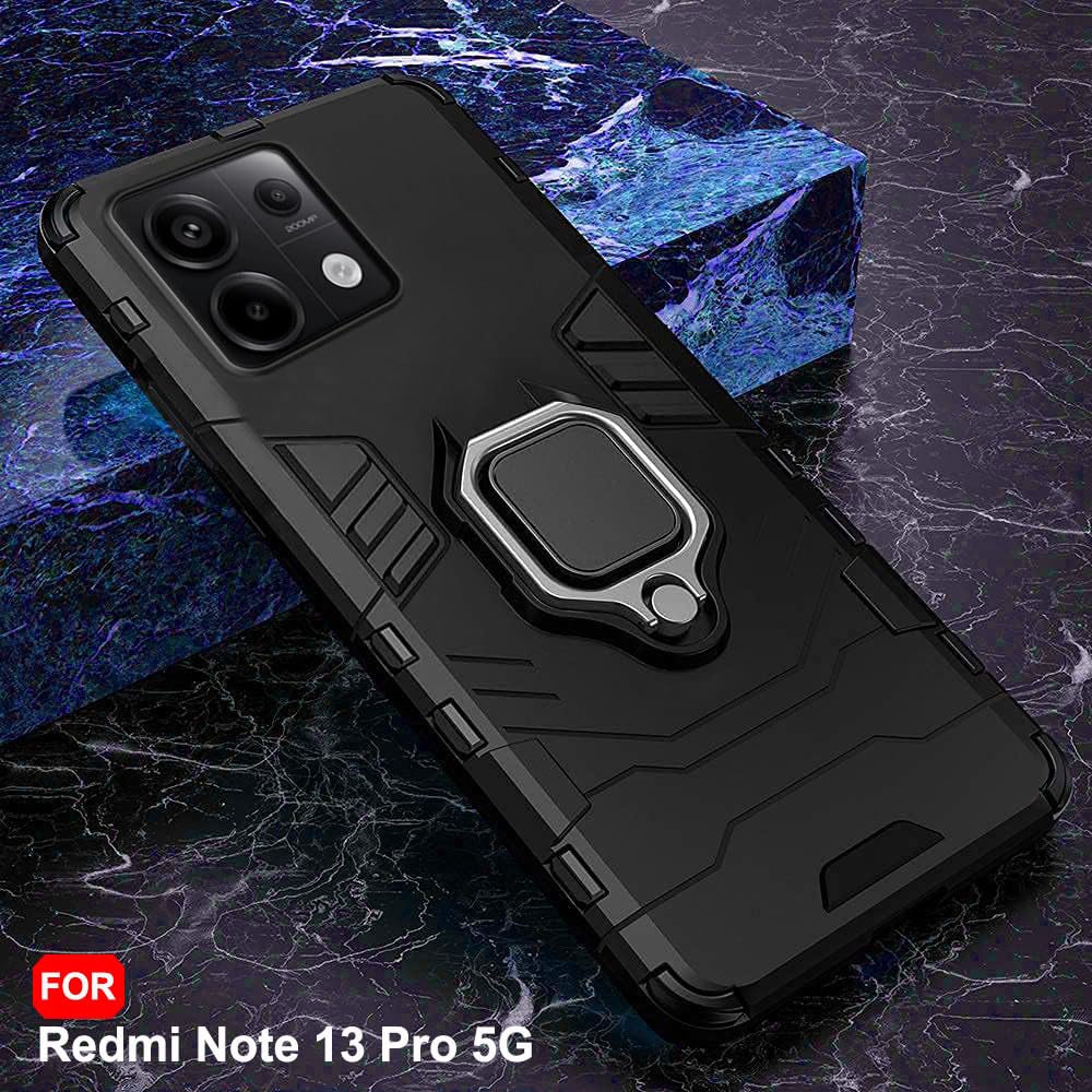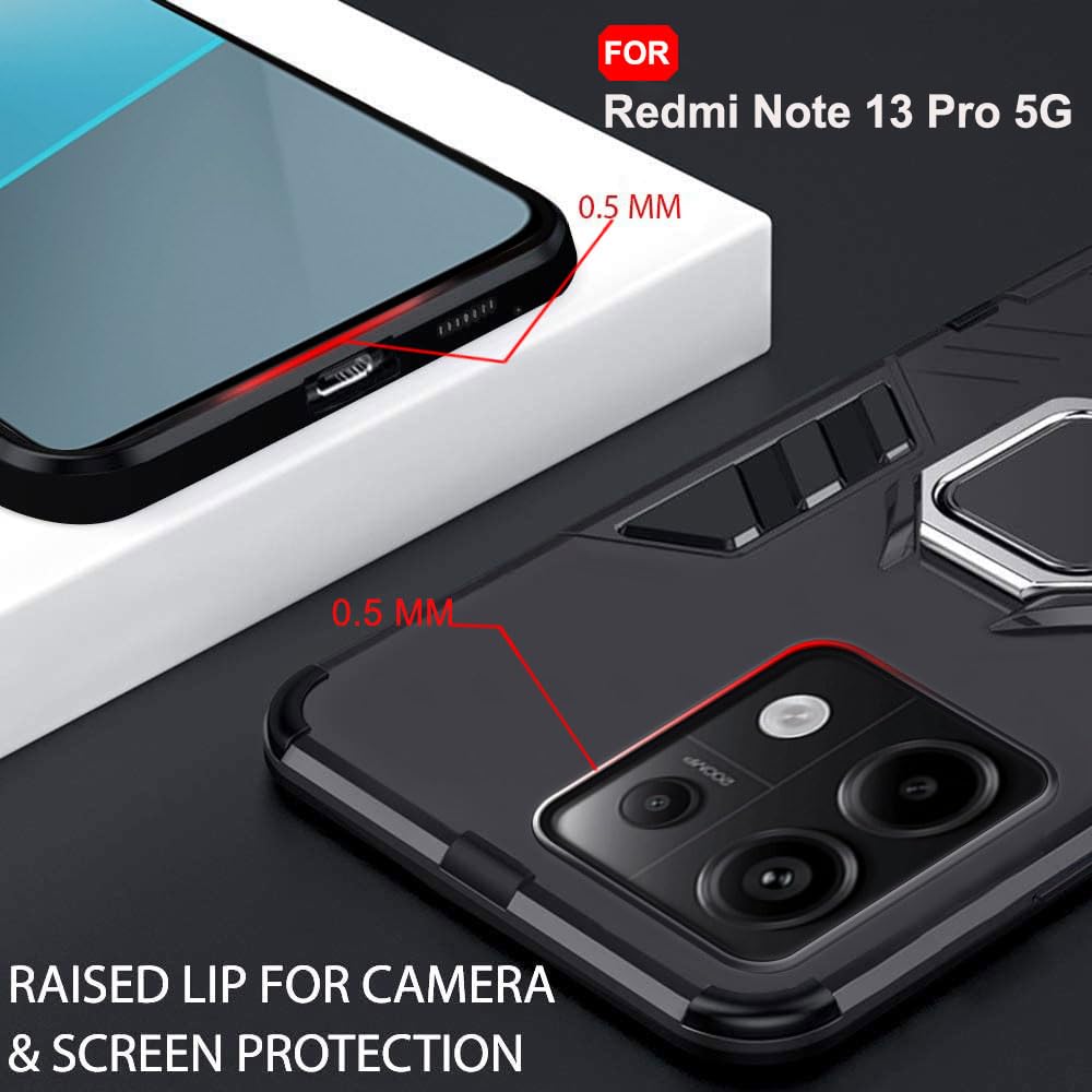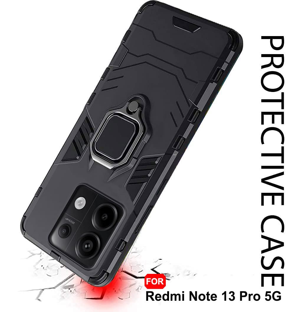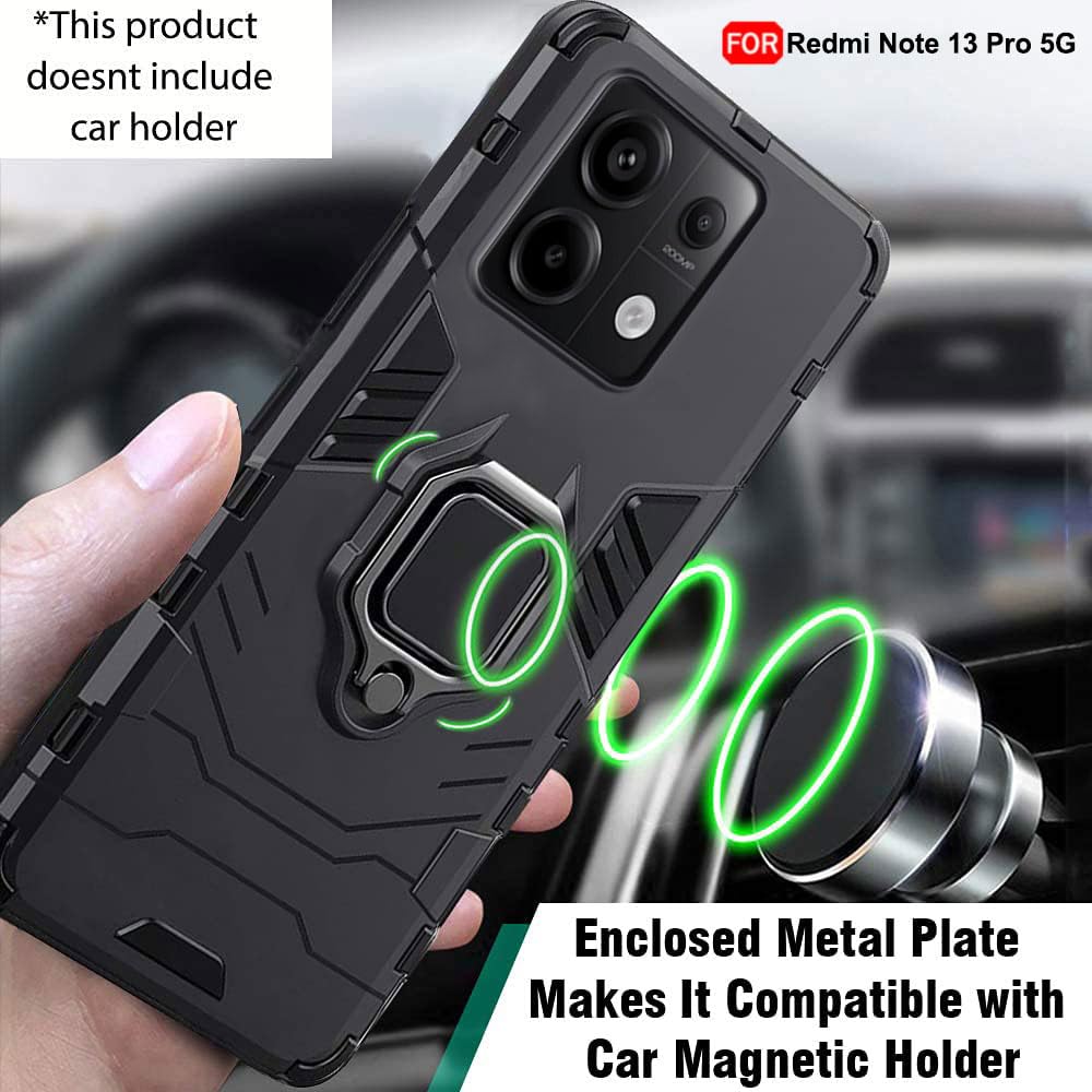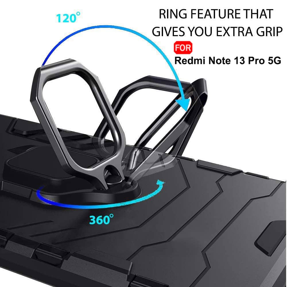 TheGiftKart Tough Armor Bumper Back Case Cover for Mi Redmi Note 13 PRO 5G | Ring Holder & Kickstand in-Built | 360 Degree Protection Back Case Cover for Redmi Note 13 Pro 5G (PC & TPU, Black)