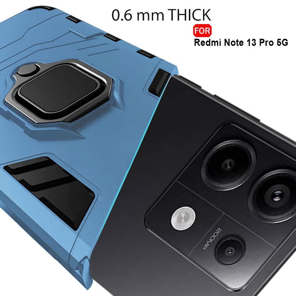 TheGiftKart Tough Armor Bumper Back Case Cover for Mi Redmi Note 13 Pro 5G | Ring Holder & Kickstand in-Built | 360 Degree Protection Back Case Cover for Redmi Note 13 Pro 5G (PC & TPU, Greyish Blue)