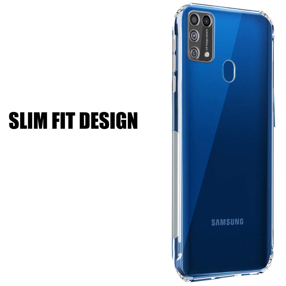 TheGiftKart Ultra Clear Slim Anti-Slip Grip Soft Silicone Back Cover Case with Complete Camera Protection & Anti-Dust Plugs Built-in for Samsung Galaxy M31 Prime / M31 (Transparent)