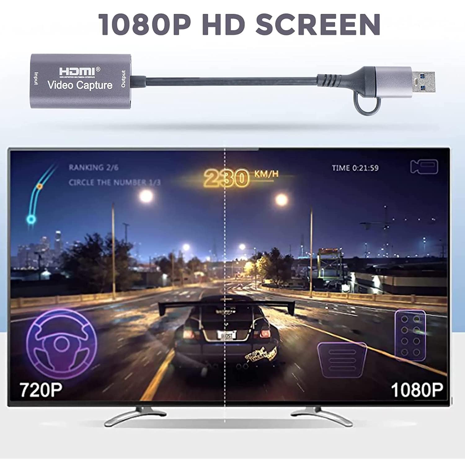 1080P 60FPS video capture card. This HDMI-compatible game capture card is based on USB 3.0 or USB Type C high speed transmission port, input resolution up to 4K@60HZ, output resolution up to 1920×1080@60Hz. Easily meet the online capture, real-time recording, online meetings, online teaching, video conference, live gaming and other functions, so you have a better visual enjoyment