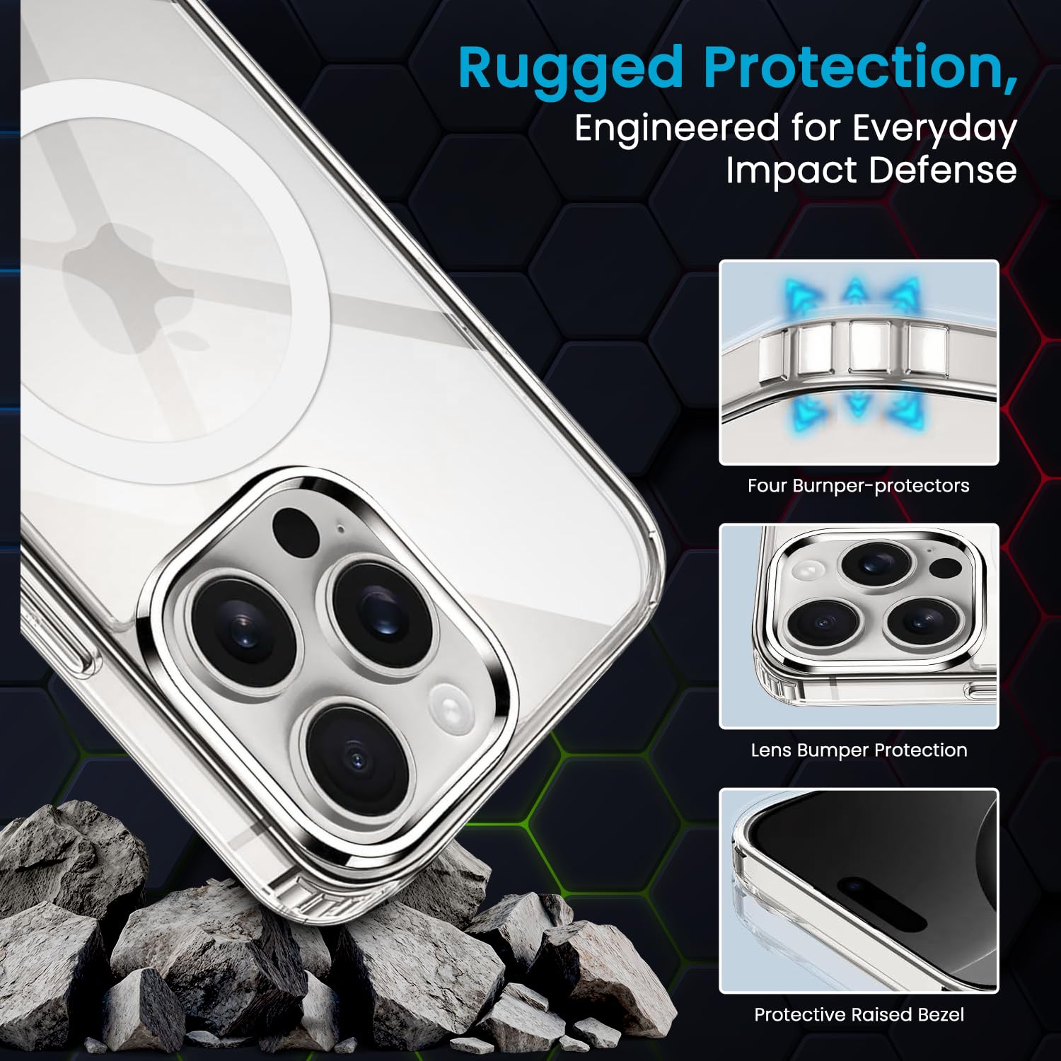 MAG-SAFE COMPATIBLE FOR SEAMLESS CHARGING – Integrated with precision-aligned magnets, ensuring effortless attachment to Mag-Safe chargers and accessories for uninterrupted wireless charging.