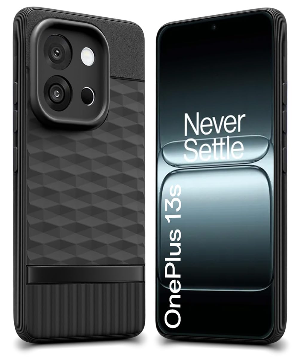 WOW IMAGINE Back Cover for 1+ OnePlus 13s 5G with Hexa Cube Design | Ultra Slim Soft Rubberised Case | Inner Velvet Fabric | Matte Silicone Flexible Mobile Case | Camera Protection – Black