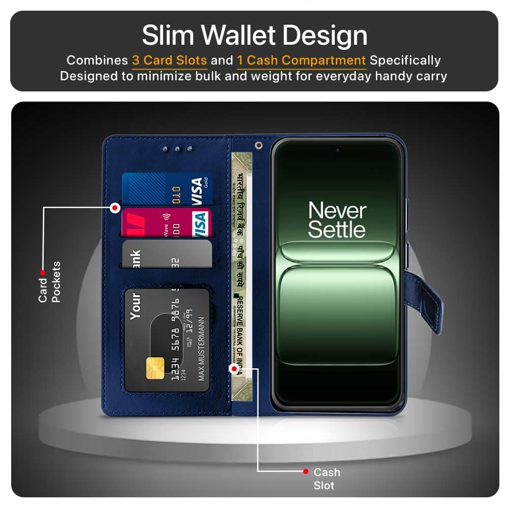 WOW IMAGINE Shock Proof Flip Cover Back Case Cover for 1+ OnePlus 13s 5G (Flexible | Leather Finish | Card Pockets Wallet & Stand | Blue)