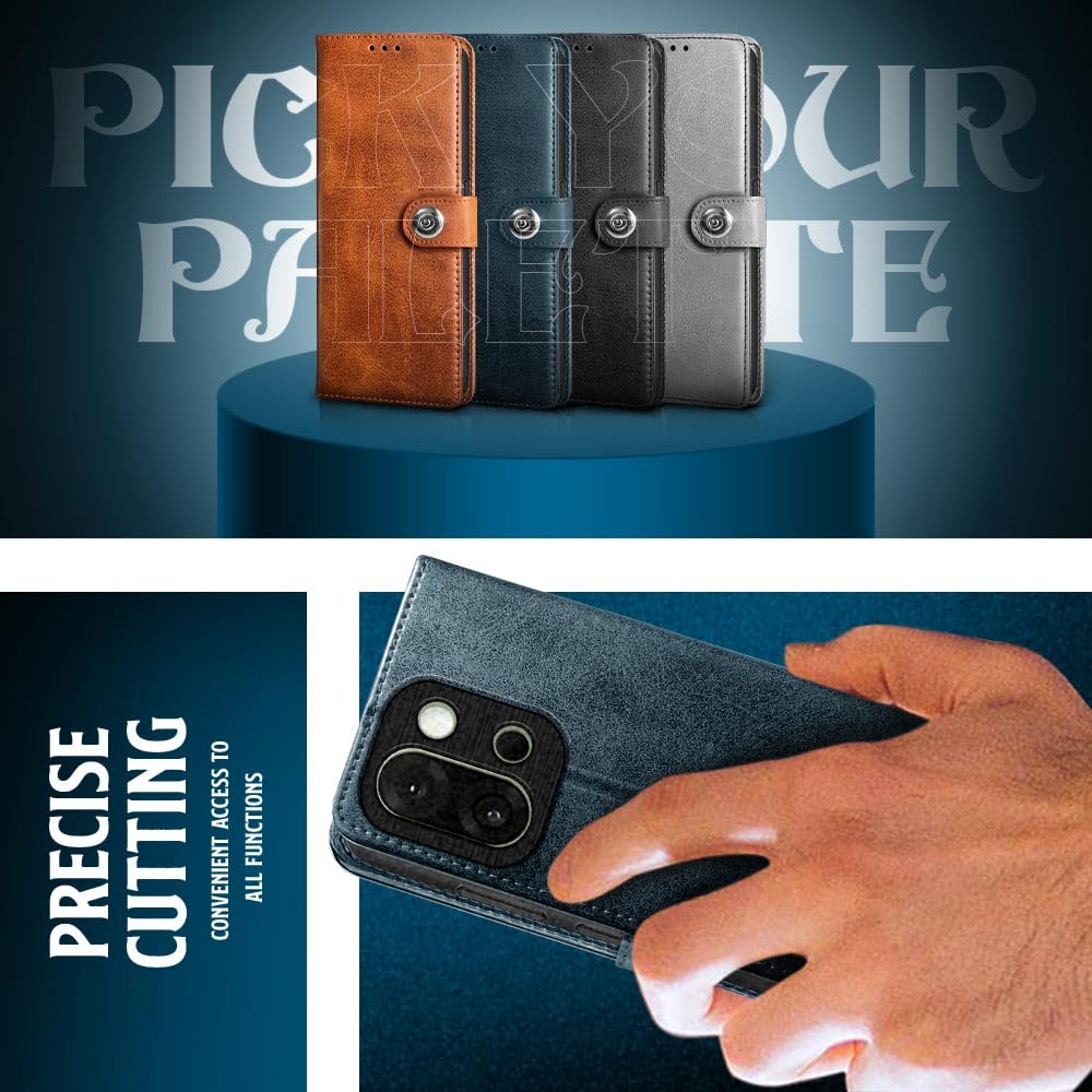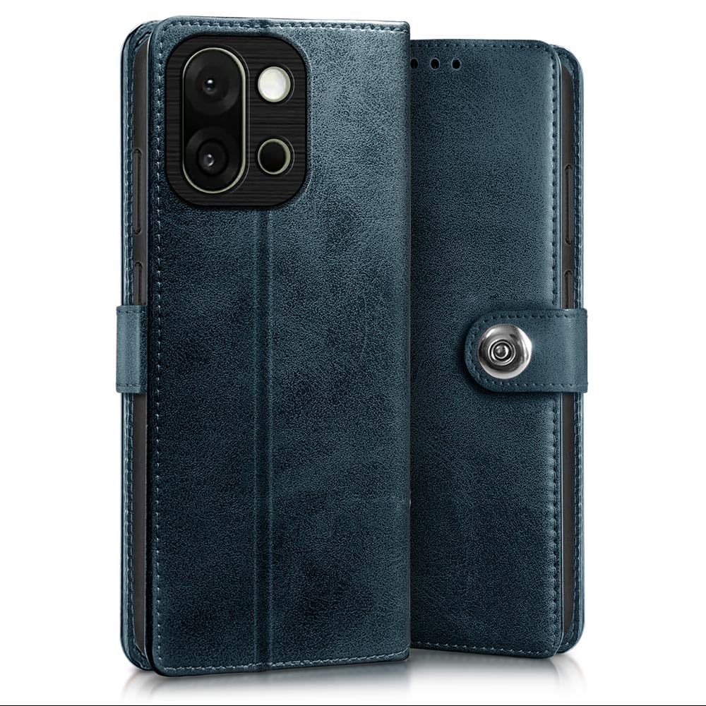 WOW IMAGINE Shock Proof Flip Cover Back Case for 1+ OnePlus 13s 5G (Magnetic Button Flip Case | Wallet Pockets & Stand | Leather Finish | Oxford Blue)