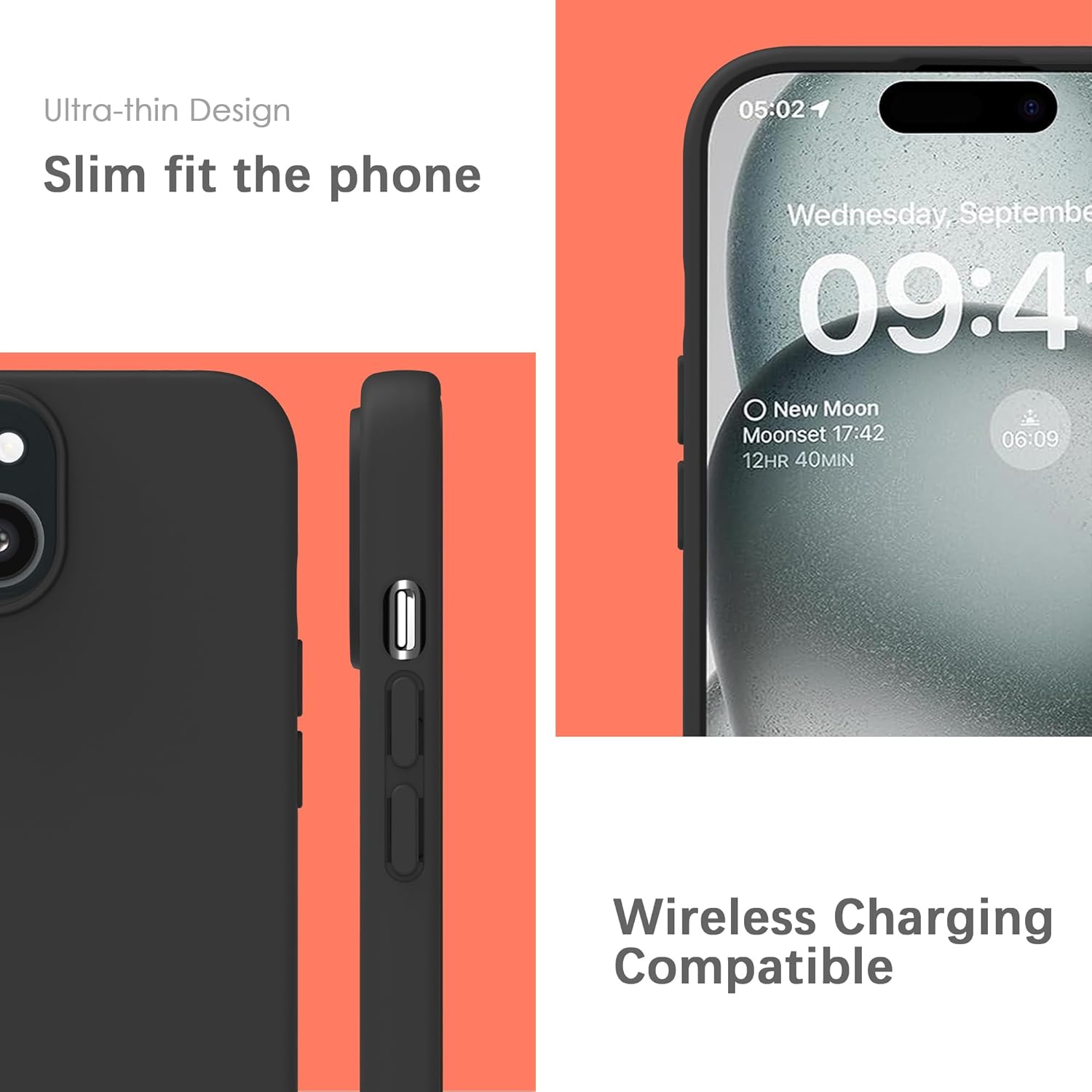 YATWIN Silicone Back Case for iPhone 15 Plus, Soft-Touch Phone Back Cover for Apple iPhone 15 Plus – Black