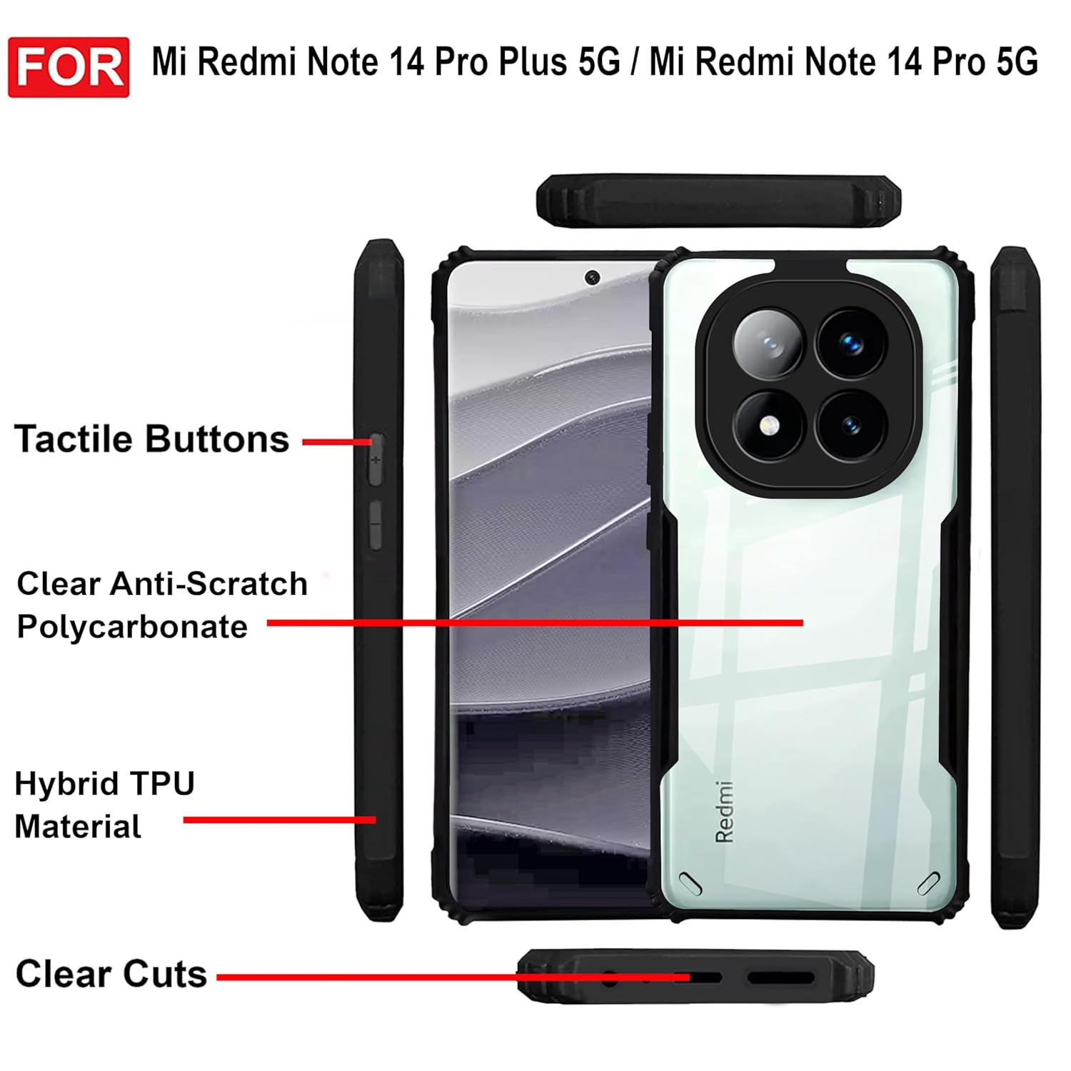 Zapcase Back Case Cover for Mi Redmi Note 14 Pro Plus 5G | Compatible for Mi Redmi Note 14 Pro Plus 5G Back Cover | Clear Case with Camera Protection | (TPU + PC | Matte Black)